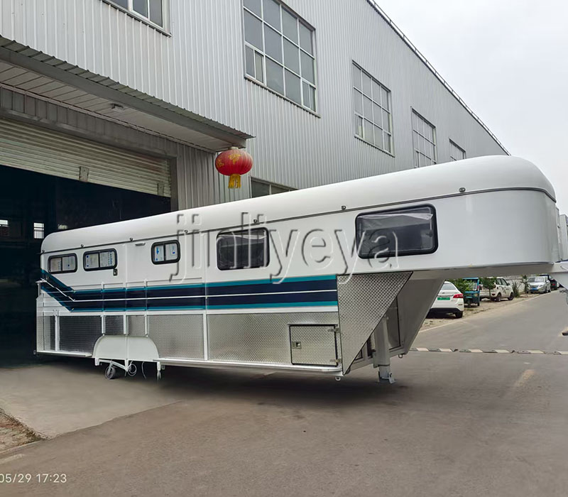 地板:地板一般采用防滑、耐磨且易于清洁的材料制成。防滑设计可防止马匹在运输过程中滑倒受伤;耐磨材料能承受马匹的体重和蹄部的摩擦;易于清洁的特性则便于在每次运输后对车厢进行彻底的清洗和消毒,保持车厢内部的卫生。